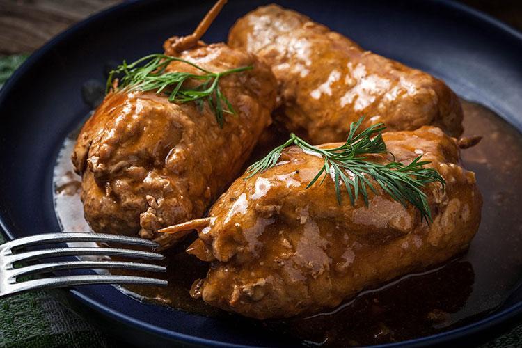 Üstlerine mantarları yerleştirip rulo yapın ve kürdanla tutturun.