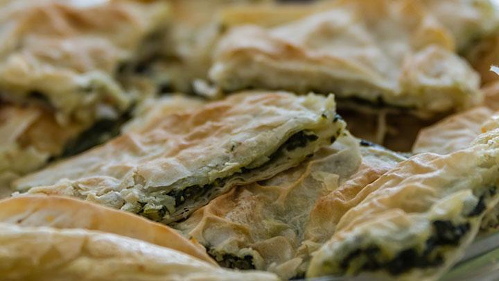Yarım yufkayı parçalayıp tepsiye bir kat dizin. İç harcı yayın. Kalan yarım yufkayı da parçalayarak bir kat dizin ve sos dökün. Kenarlarını içeri kapatarak kalan sosu üzerine dökün ve pişirin.