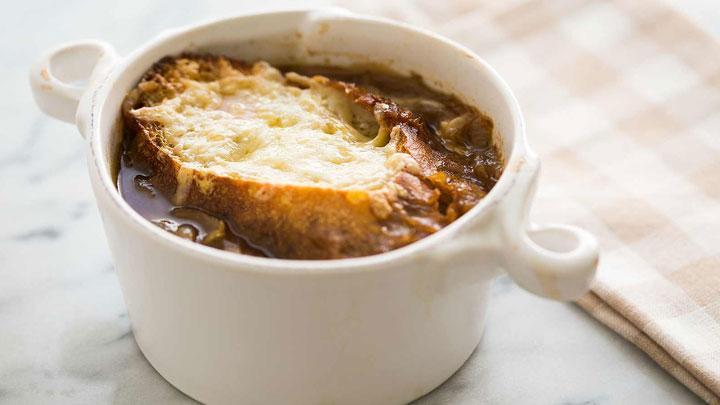 Peyniri bayat ekmek dilimlerinin üzerine eşit miktarda paylaştırın. Fırın ızgarasını 175 dereceye ayarlayıp, ekmekleri koyun. Peynirler iyice eriyinceye kadar 5-7 dakika tutun. Sonra da tabaklara boşalttığınız çorbaların tam ortasına oturtup, sıcak olarak servise sunun.