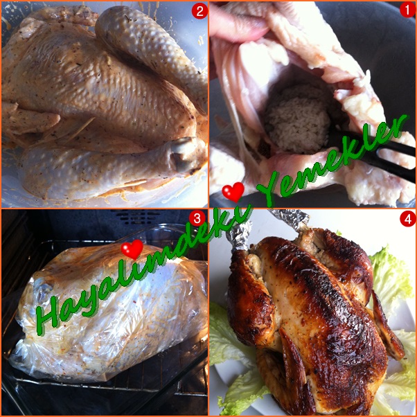 - kus uzumlerini bol suyla yıkayın sıcak suda yarim saat kadar bekletin maydanozu kucuk kucuk kesin,maydanozu,karabiberi, kus uzumleriyle beraber pilava ilave edip guzelce karistirin once tavugun icni biraz tuzlayin sonra ic pilavi tavuga doldurun tavugun acik yerlerini kurdanla kapatin veya pamuklu iple dikin
