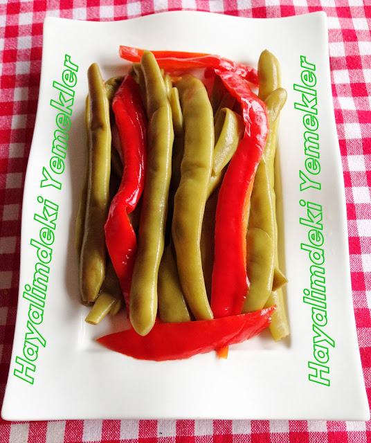 Turşuda en sevdiğim malzemelerden biri taze fasulyedir bu defa karışık yapmak istemedim onun için sadece taze fasulye fasulye yapmak istedim siz isterseniz karışık yapabilirsiniz ben uzerine biraz renk olsun diye bir tane kırmızı biberi cigden koydum artık o sizin isteğinize kalmış şimdi tarifimize bir göz atın