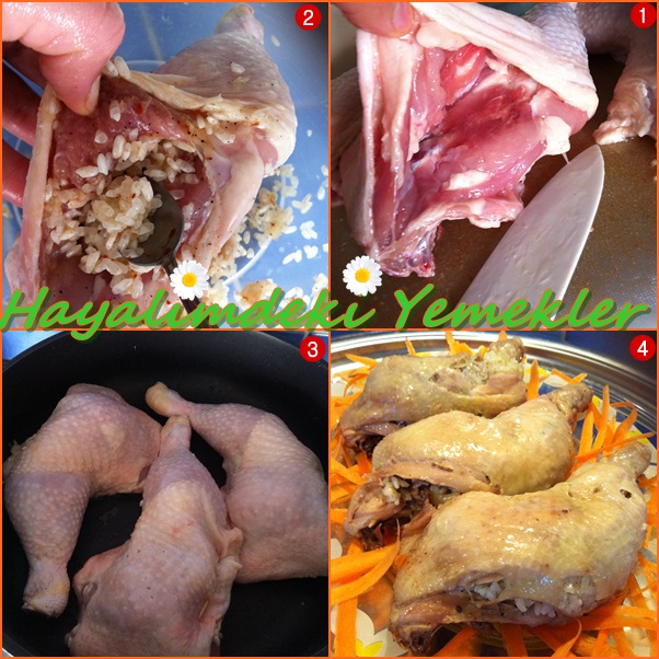 - Tavuk butlarını güzelce yıkayın üstündeki deriyi kaldırmayın keskin bir bıçakla budun kenarında içini acmaya başlayın but kisminin yukarısına doğru pârmaklarinizla butun ic kısmini cep gibi yapin eğer bu islemi kasabınız yaparsa sizin için buyuk kolaylık olur