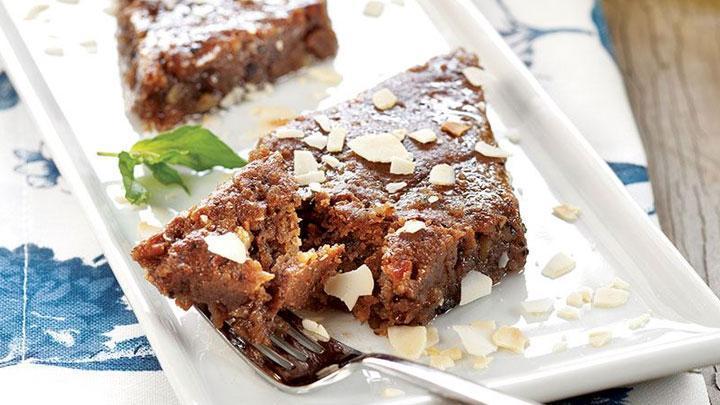 1 portakalı iyice yıkayıp önce kabuğunu rendeleyin, sonra suyunu sıkıp, süzerek yoğurduğunuz hamura katın. Bayat ekmek dilimlerinin kabuklarını çıkarıp, içlerini un ufak edin ve hamuru karıştırın. Karbonatı da serpip tekrar yoğurup, tereyağı ile yağladığınız tepsiye bastırarak yayın.
