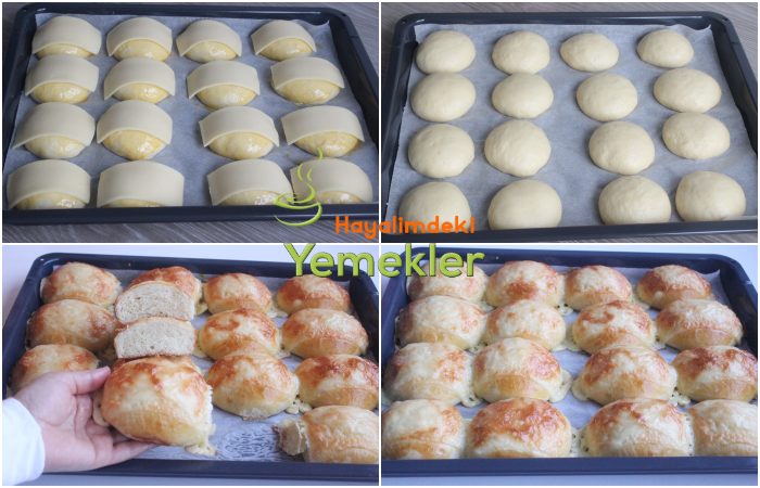 - Hamurumuzu yumurtadan büyük bezeler yapın yağlı kağıt serilmiş fırın tepsisine aralıklı olarak yerleştirin Üzerine temiz bir bez örtüp 20-30 dakika kadar dinlendirin.