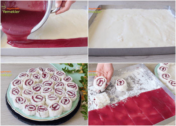 Büyük boy fırın tepsisine hindistan cevizi serpin. Hazırlamış olduğunuz kremayı üzerine dökün, soğuması için buzdolabına kaldırın.